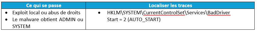· Nom du service ou du driver malveillant